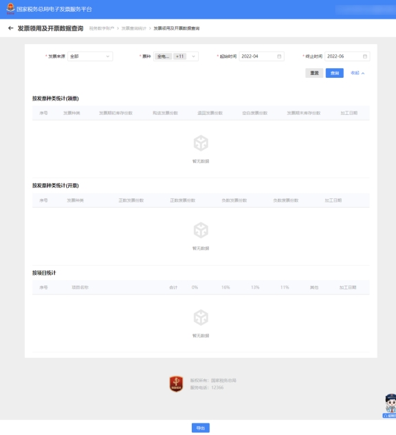 問:如何在電子發(fā)票服務平臺中查詢發(fā)票領用及開票數(shù)據?