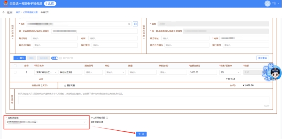 信息填寫完,選擇應稅發生地,然后點擊下一步。