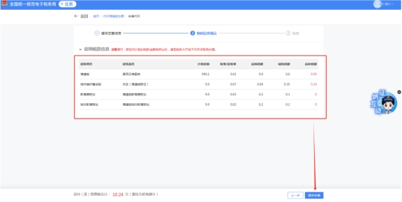 如需在發票票面備注其他信息,可在“備注信息”一欄填寫需要備注的內容,否則無需填寫。點擊“下一步”,進入納稅信息確認頁面。