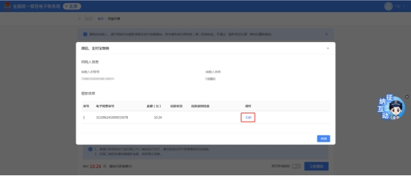 進入后,可以看見自己審核通過的發票,可以查看詳情及繳稅,點擊繳稅,進入繳稅流程。