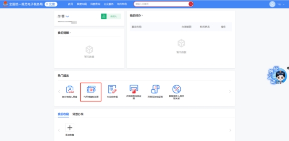 進入后,點擊熱門業務-代開增值稅發票。