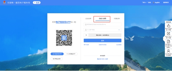 選擇自然人業務,輸入用戶名、密碼,點擊登錄。