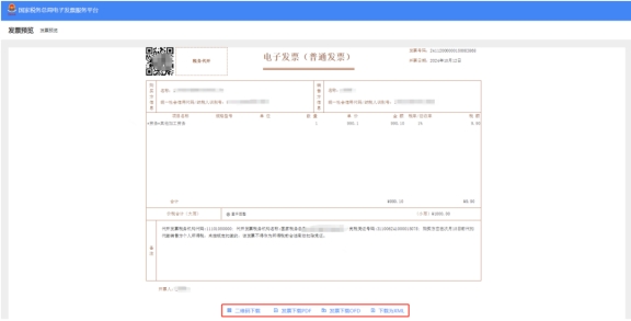 開具成功后,可以點擊下載,可以二維碼下載,PDF下載,OFD下載,下載為XML等形式。