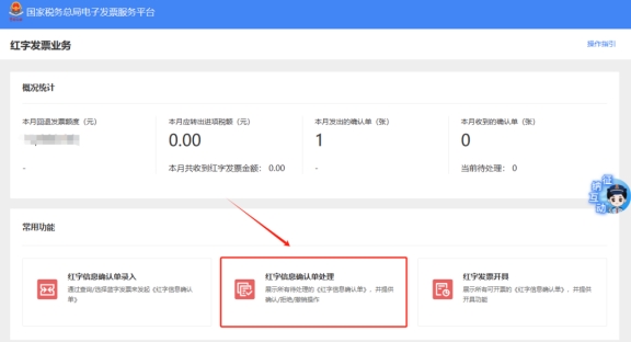 如果是需要對方進行確認的情況,對方納稅人登錄后可在【我要辦稅】—【開票業(yè)務】—【紅字發(fā)票開具】—【紅字信息確認單處理】頁面處理,同意紅沖選擇“確認”,不同意紅沖選擇“拒絕”,也可以對紅字信息確認單進行撤銷。