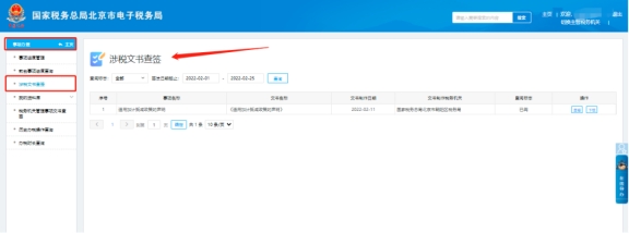 第七步:納稅人可在電子稅務局的“我要查詢”—“涉稅文書查簽”模塊中簽收《清稅證明》通知書。在操作列中查看《清稅證明》具體信息。