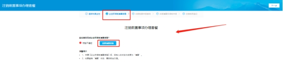 第二步:點擊【注銷預檢】按鈕可對未辦結事項進行展示,處理完未辦結事項后,再辦理注銷登記。