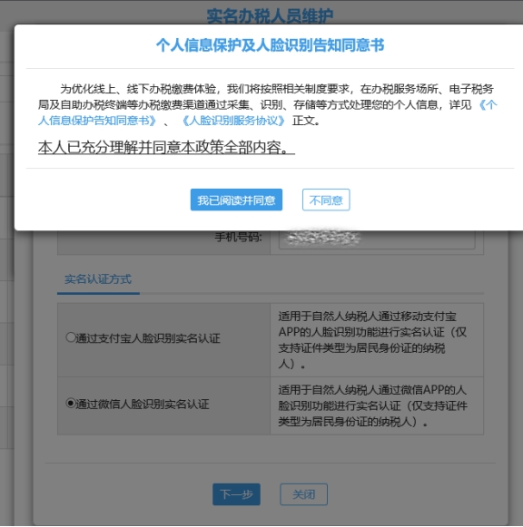 九、個人信息保護及人臉識別告知同意書頁面。